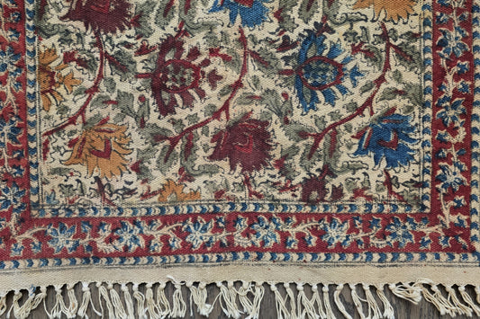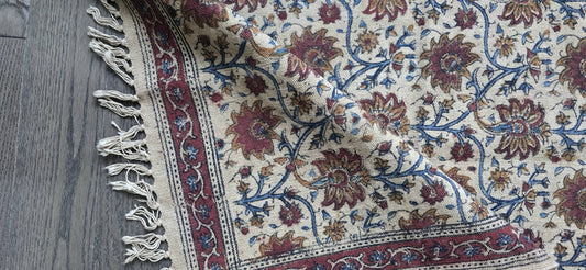 Saanvi - Floral Kalamkari Runner- Handwoven, block printed cotton durrie