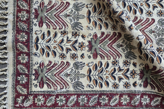 Kala - Floral Kalamkari Runner- Handwoven, block printed cotton durrie