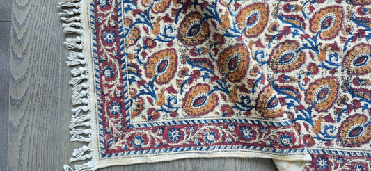 Discover our handcrafted Kalamkari rugs, sourced from skilled artisans in southern India. Made of premium cotton, dyed with natural vegetable dyes, each rug showcases intricate detailing. Elevate your space with authenticity and warmth. Explore our collection today!