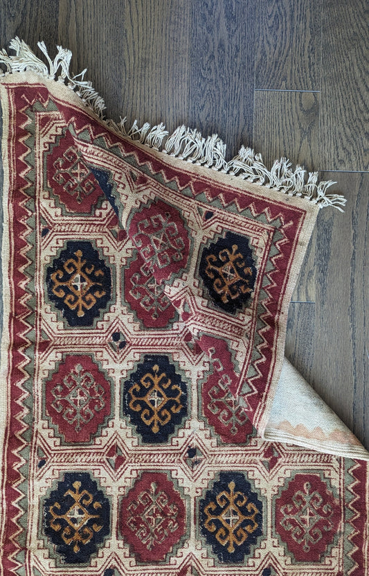 Lohita Geometric Kalamkari Runner - Handwoven, block printed cotton durrie